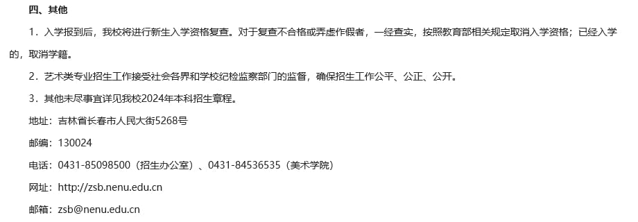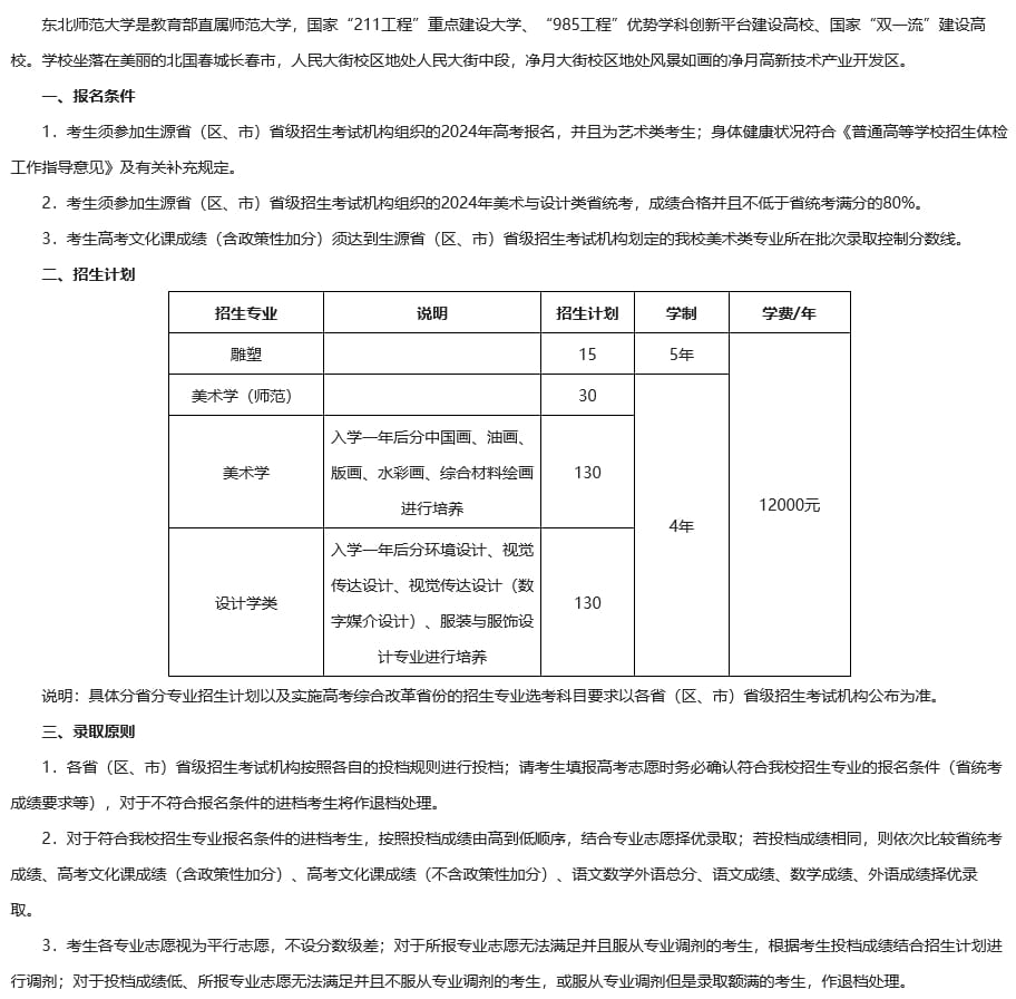 东北师范大学2024年美术类专业招生简章